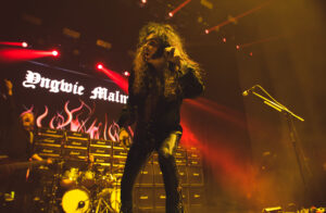 La presentación siguió en ebullición con “Relentless Fury” y “Like an Angel”, canciones de su más reciente disco, en las que el mismo Yngwie tomó la voz principal, haciendo de su guitarra y su canto una extensión indivisible. Su entrega fue completa, lanzaba uñetas a diestra y siniestra, algunas directo al público, otras al aire, rematadas con una patada para mandarlas a volar como si fueran proyectiles de su propio arsenal. Además, moviéndose con los clásicos gestos que son su marca registrada, esos pasos cortos hacia atrás, los movimientos de cadera y el trote incesante mientras su guitarra rugía.