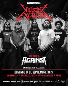El line-up se completa Invasión Thrash y Descarnado, para una jornada que promete ser pura descarga de metal extremo. Violent Execution llega en un momento consagratorio, luego de una histórica fecha en Uniclub, con sala colmada, despidiendo su álbum Invasores y abriendo una nueva etapa musical. Además, con presentaciones en Uruguay y distintas provincias de Argentina, se consolida como una de las bandas más poderosas de la escena actual.