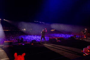 “You Could be Mine”, con la potente intro de batería a cargo de Isaac Carpenter, fue otro de los puntos altos del concierto, siendo cantada por todos, sencillo lleno de adrenalina que a muchos recuerda a la banda sonora de Terminator 2, lo que se reafirma con una calavera metálica proyectada en pantalla. Tras la grandilocuente “Civil War”, que abre Use Your Illusion II, Slash se despacha un solo inspiradísimo, performance que conecta con “Sweet Child o’ Mine”, el primer gran éxito de la banda, que los llevó camino al estrellato a fines de los ’80. Lluvia en pantalla y Axl Rose al piano, para que suene “November Rain”, otro clásico del conjunto -volviendo a brillar Slash en las seis cuerdas- llegando ya al final con “Nightrain” y la animada “Paradise City”, desatando la fiesta en el Parque Estadio Nacional, siendo su estribillo cantado por todas las lamas presentes. Un cierre apoteósico.